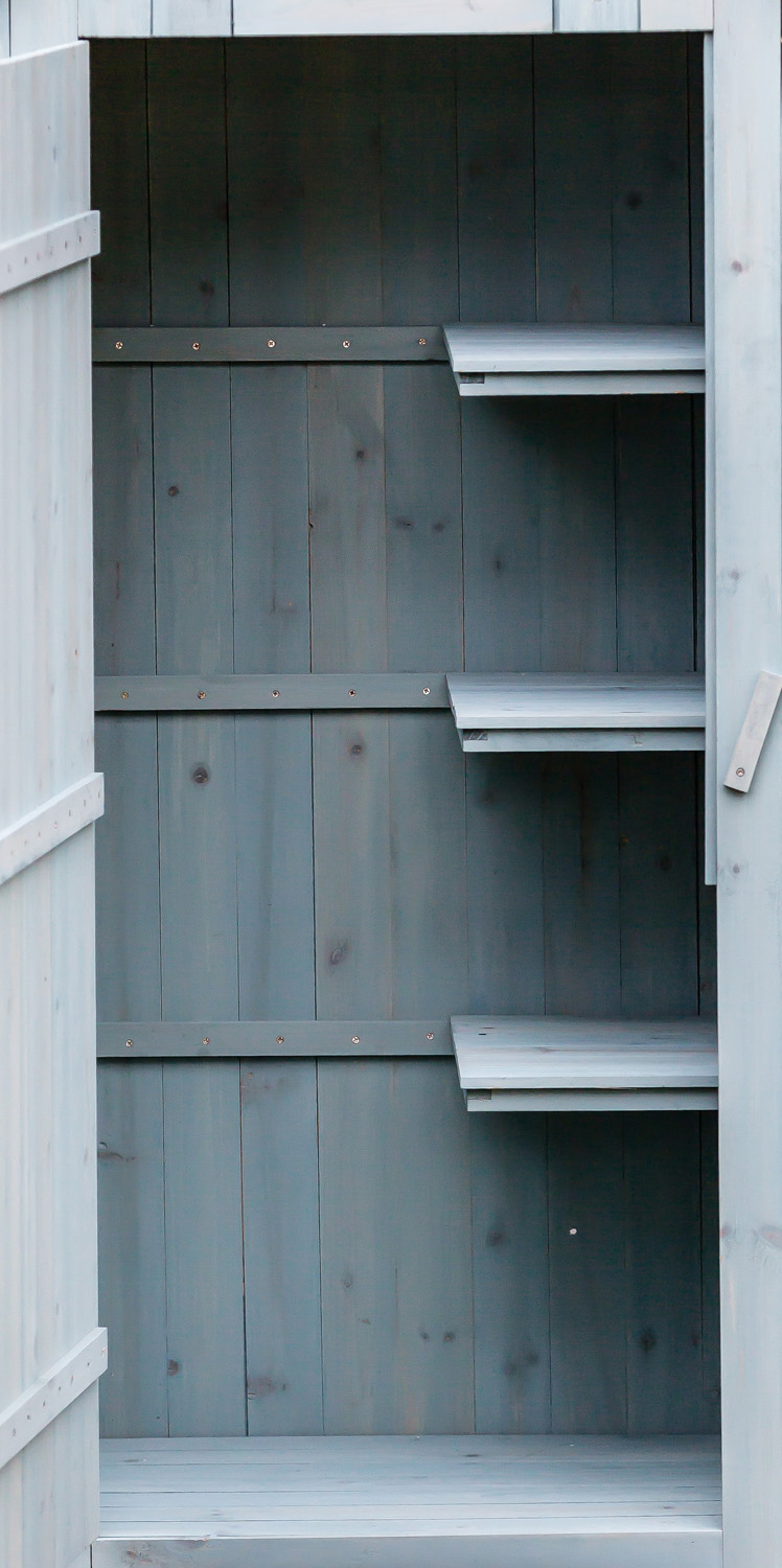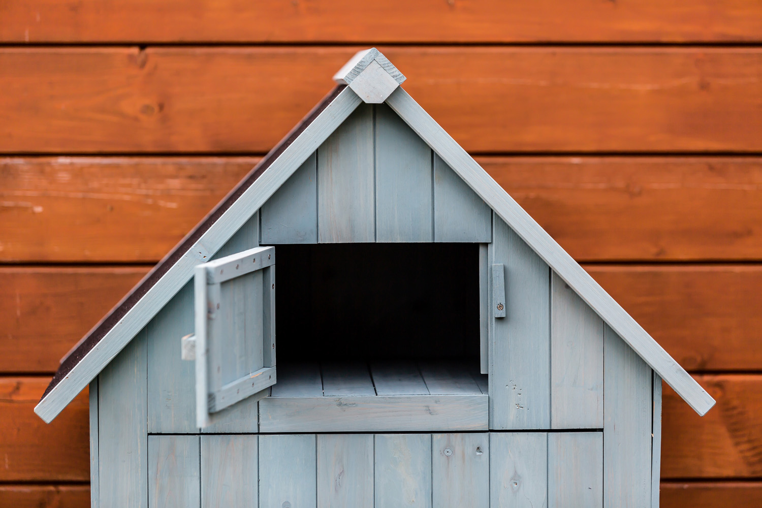 Casetta a pannelli in legno trattato alta temp., spess. 19 mm, mono pendenza, c/pavimento, copertura lastre ondulate, garanzia 10 anni. (HxPxL): 1,23m. X 0,65m. x 0,44m. 0,28 m².