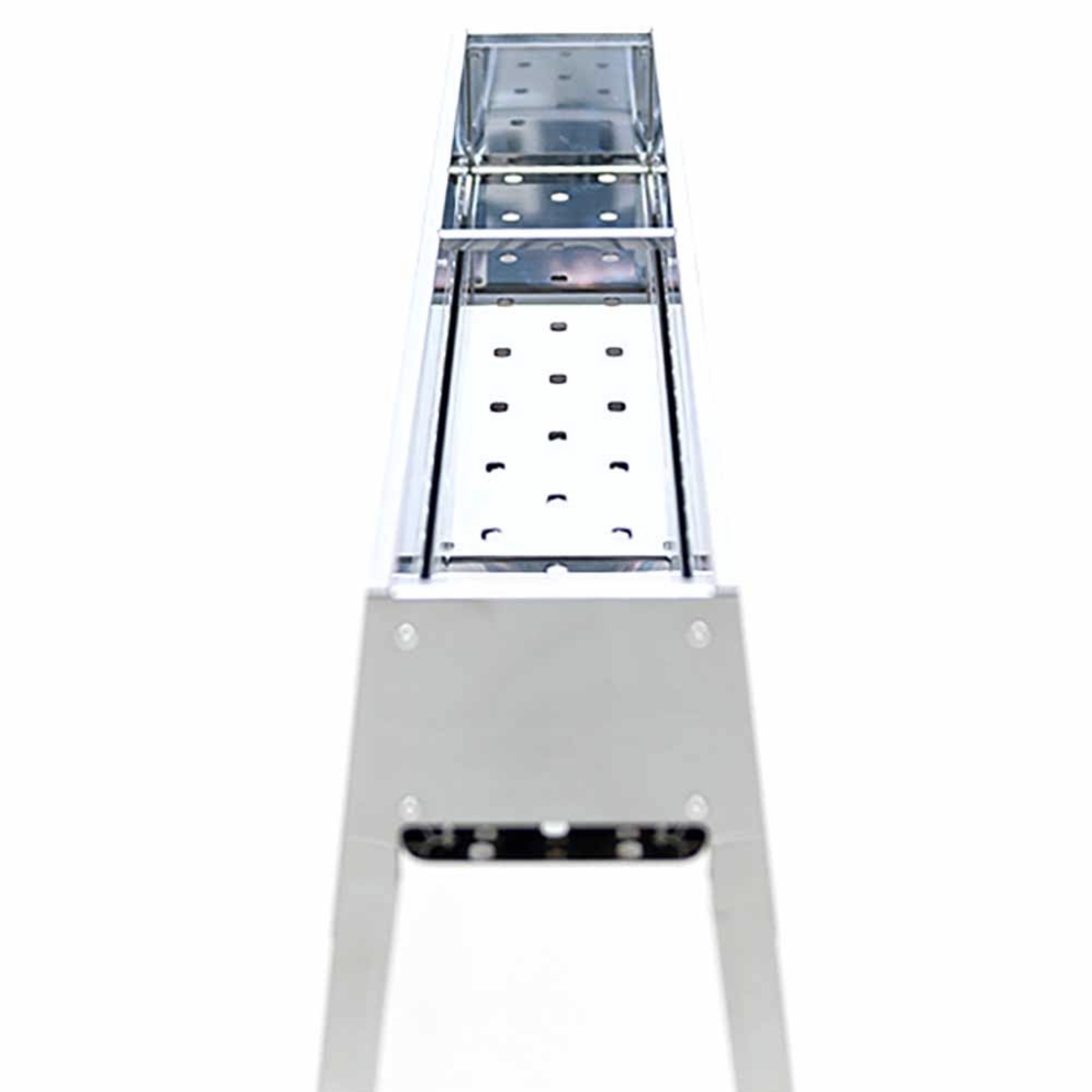 Il design a doppio fondo traforato favorisce la circolazione dell’aria e mantiene una brace viva e costante, mentre il secondo strato funge da raccoglitore di cenere per una pulizia semplice e rapida. Grazie al sistema di innesto a baionetta, le gambe si montano in pochi secondi senza bisogno di attrezzi, rendendo questa canalina ideale per l’uso in terrazzo, balcone o in gite all’aperto.