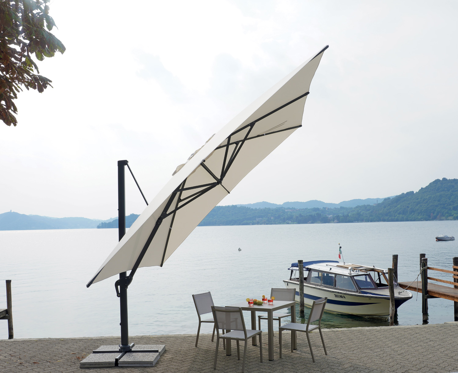 Il telo in poliestere 240 g color ecrù protegge efficacemente dai raggi UV e resiste all’umidità, mantenendo nel tempo un aspetto elegante e uniforme. L’ombrellone è dotato di sistema antivento, indispensabile per garantire la massima sicurezza anche in caso di folate improvvise, e di una funzione di rotazione a 360° che consente di orientarlo facilmente in base alla posizione del sole, offrendo ombreggiatura continua per tutto l’arco della giornata.