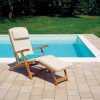 Realizzata con materiali resistenti e durevoli, la Poltrona Steamer Reclinabile con Cuscino Ecrù Sfoderabile garantisce stabilità e lunga durata anche in ambienti esterni. Il cuscino ecrù, elegante e raffinato, è completamente sfoderabile e lavabile, per assicurare praticità e igiene nel tempo. Le ampie doghe della seduta e dello schienale migliorano la traspirabilità e offrono un sostegno ergonomico che favorisce il massimo relax.