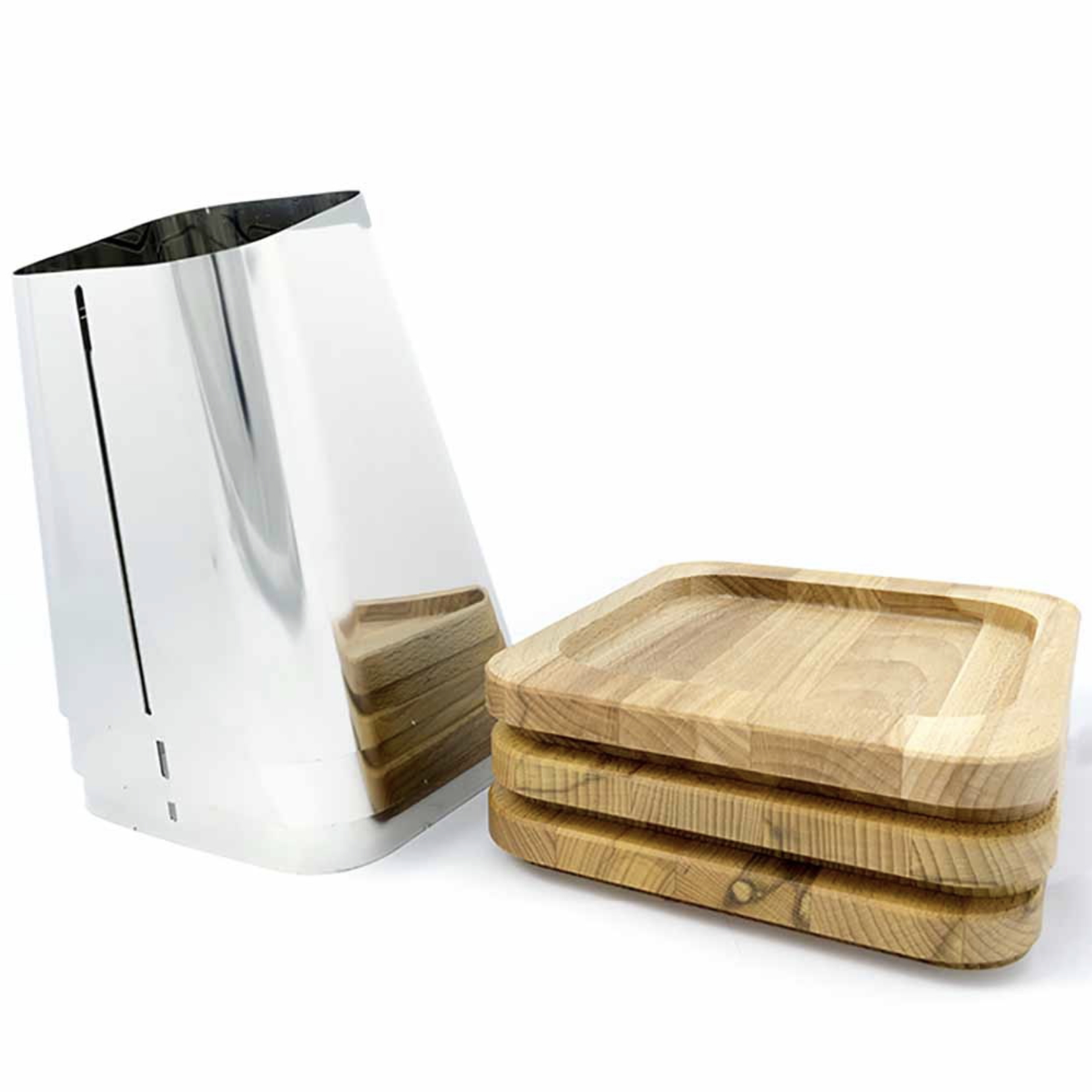 - Presentazione elegante: valorizza ogni portata grazie al contrasto tra acciaio lucido e legno naturale.
