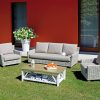 Set Jaipur In Grey Kubu Sbiancato – 2 Poltrone – 1 Divano 3 Posti – 1 Tavolino 110 X 60 X 41 Cm – In Legno Di Mango – Cuscini In Policotone Sabbia Mélange Sfoderabili