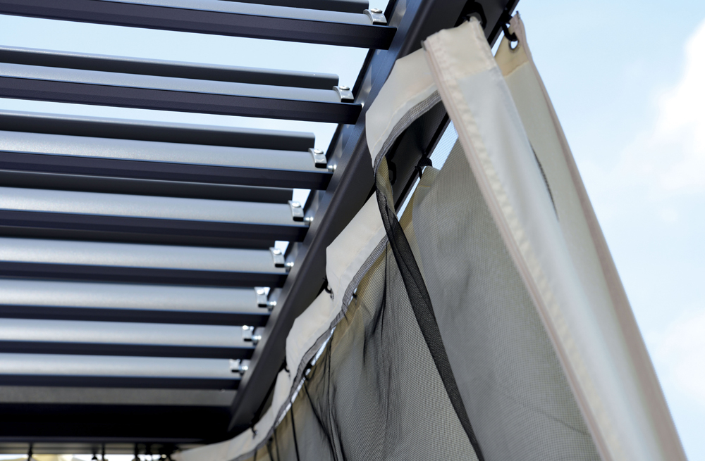 - Protezione completa: le tende oscuranti assicurano privacy e riparo dal sole, mentre le zanzariere integrate permettono una ventilazione ottimale mantenendo lontani gli insetti.
