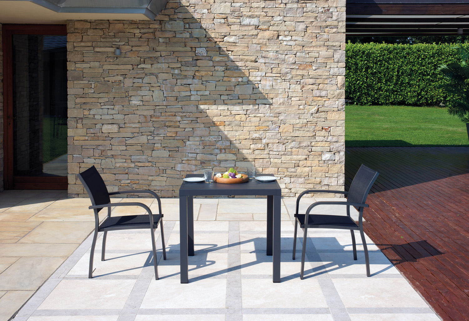 La struttura in alluminio antracite non solo conferisce al tavolo un aspetto moderno, ma fornisce anche resistenza agli agenti atmosferici e alla corrosione, garantendo una lunga durata senza richiedere eccessivo mantenimento.