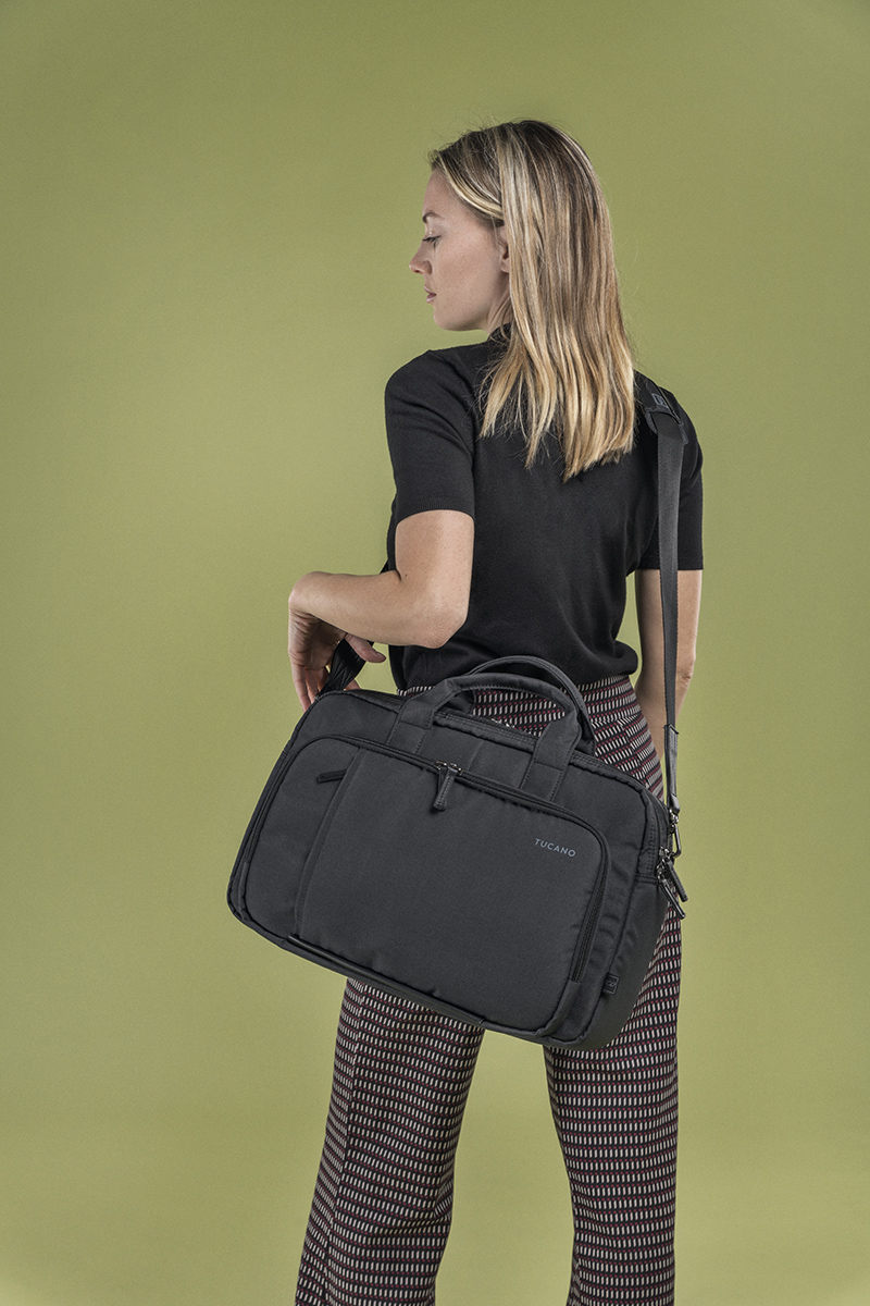 Dotato di un triplo scomparto interno, offre ampio spazio per documenti, accessori e dispositivi tecnologici. All’interno, è presente un vano imbottito dedicato per laptop fino a 15.6” e MacBook Pro 16”, oltre a una tasca separata per tablet. Grazie alla distribuzione intelligente degli spazi, tutto rimane ordinato e facilmente accessibile, semplificando la gestione della giornata lavorativa.