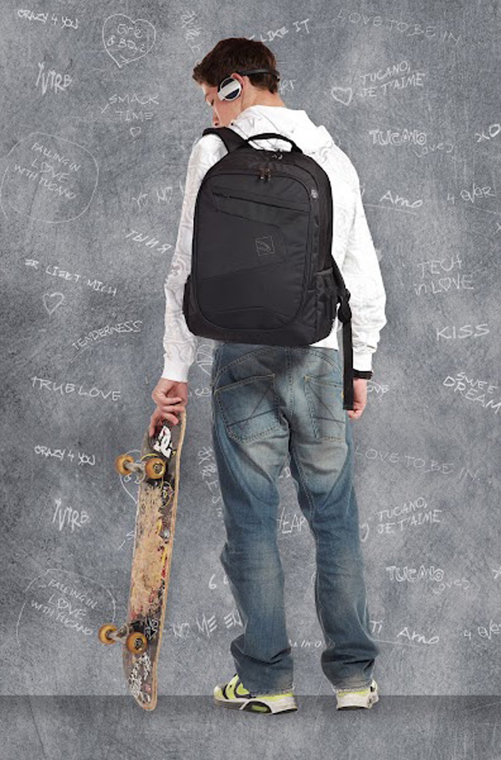 La tasca frontale con zip è organizzata per contenere penne, chiavi e accessori di uso quotidiano, mentre un taschino porta oggetti consente di mantenere tutto in ordine. È presente anche un foro dedicato per auricolari, ideale per ascoltare musica o rispondere alle chiamate in movimento. L’ampio scomparto interno è dotato di una tasca imbottita per laptop o MacBook, che garantisce protezione e stabilità durante gli spostamenti.
